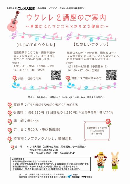 ・持ち物:ソプラノウクレレ、筆記用具