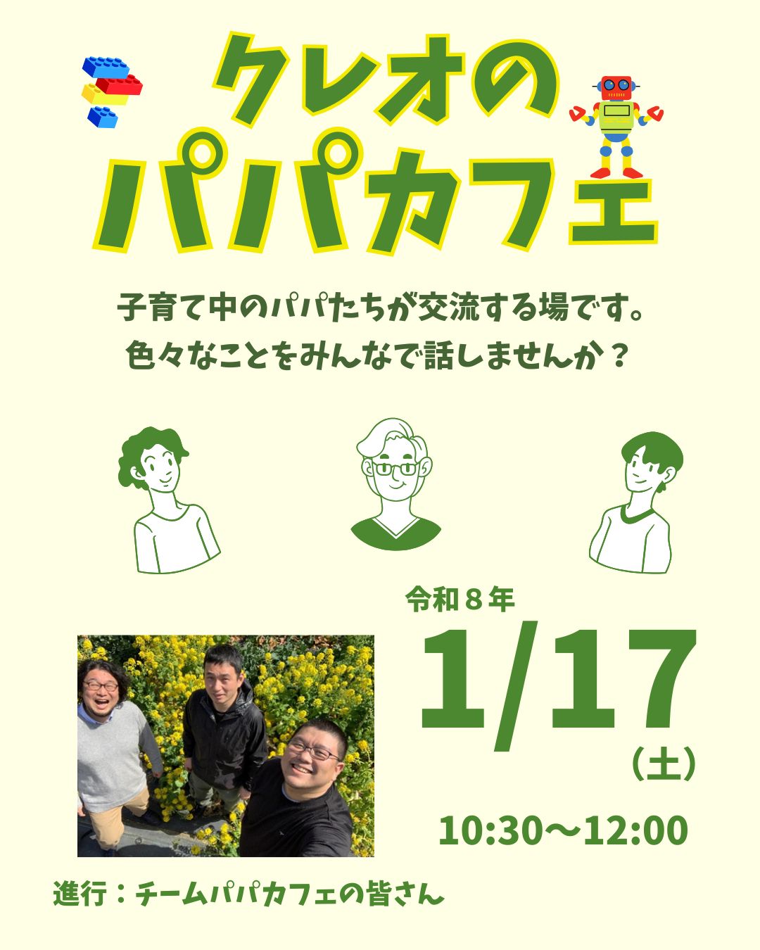 【子育て支援セミナー】クレオのパパカフェ ~パパ同士が話すと子どもが幸せになる!?~