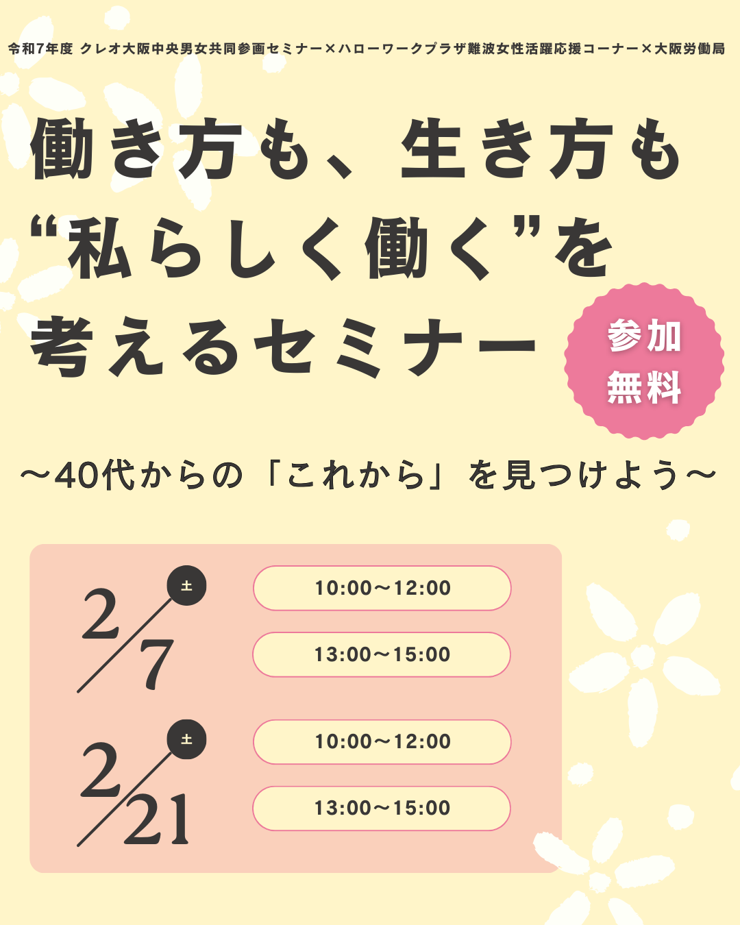 共催:ハローワークプラザ難波女性活躍応援コーナー/大阪マザーズハローワーク