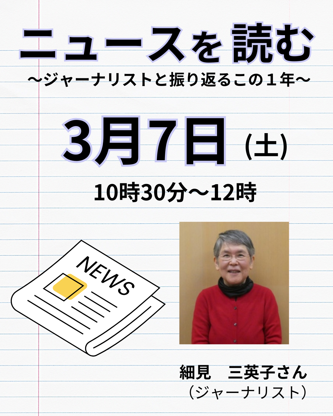 あふれる情報の中から必要な情報、正しい情報を得るためには、情報を取捨選択する力が必要です。日本初の女性首相誕生や大阪・関西万博、戦後80年、物価高など・・・いろいろあった令和7年度から、男女共同参画の切り口でニュースを取り上げ、ジャーナリストとともにこの1年を振り返ります。