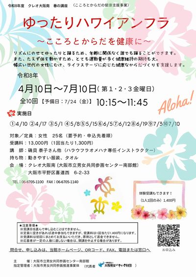 【こころとからだの健康支援事業】ゆったりハワイアンフラ~こころとからだを健康に~