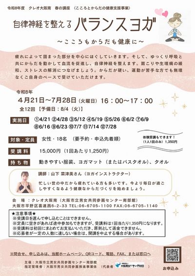 【こころとからだの健康支援事業】自律神経を整えるバランスヨガ~こころもからだも健康に~