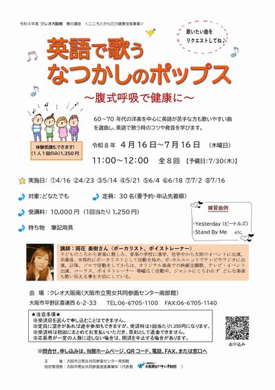 【こころとからだの健康支援事業】英語で歌うなつかしのポップス~腹式呼吸で健康に~