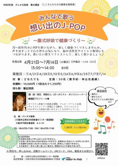 【こころとからだの健康支援事業】みんなで歌う想い出のJ-POP~腹式呼吸で健康づくり~