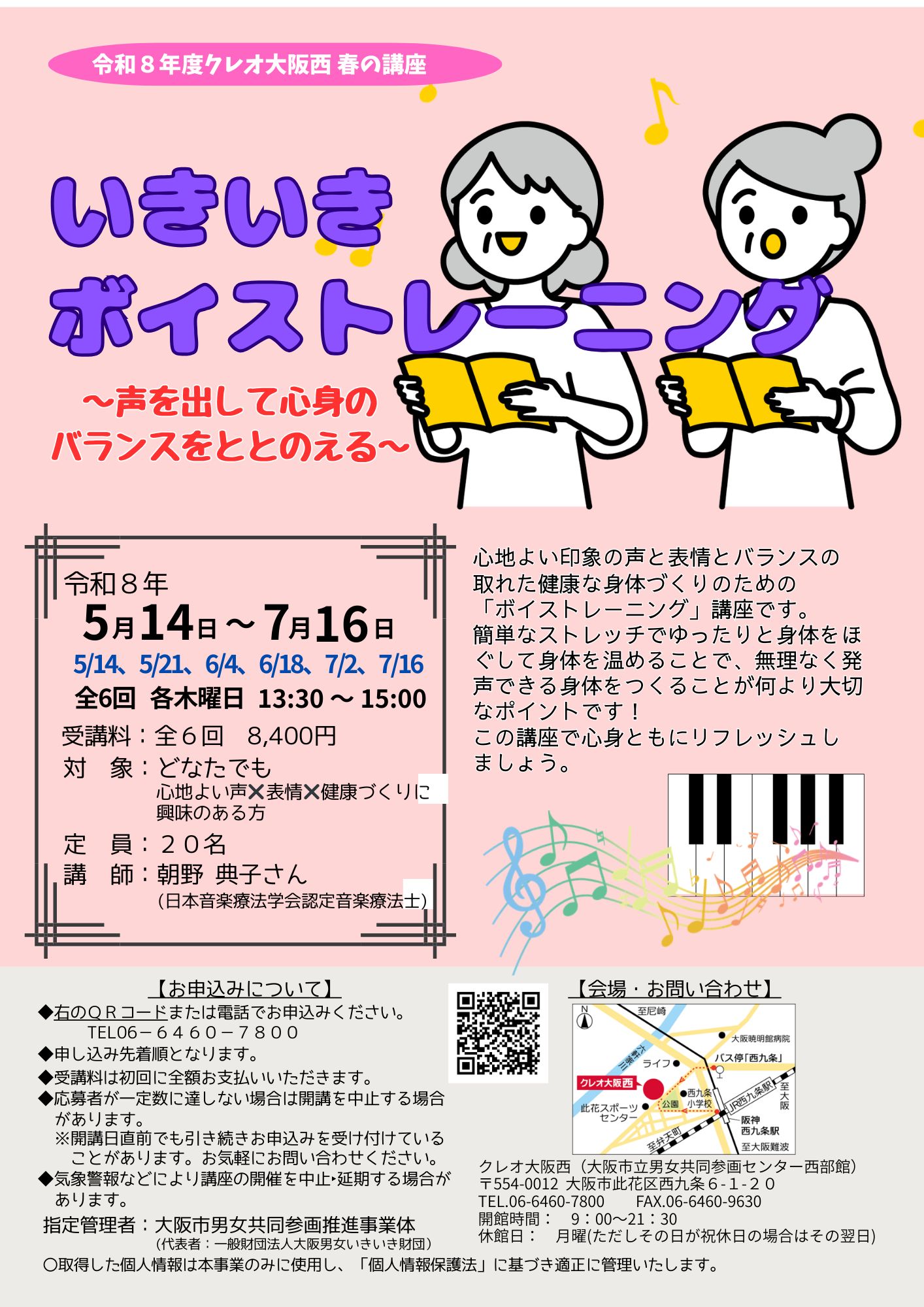 心地よい印象の声と表情とバランスの取れた健康な身体づくりのための「ボイストレーニング講座です。