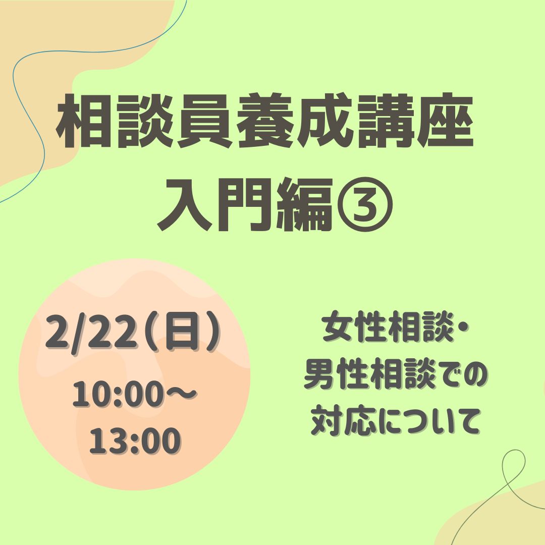 ★2月20日(金)実施の相談員養成講座入門編①、②と合わせて受講いただくと、更に学びが深まります★