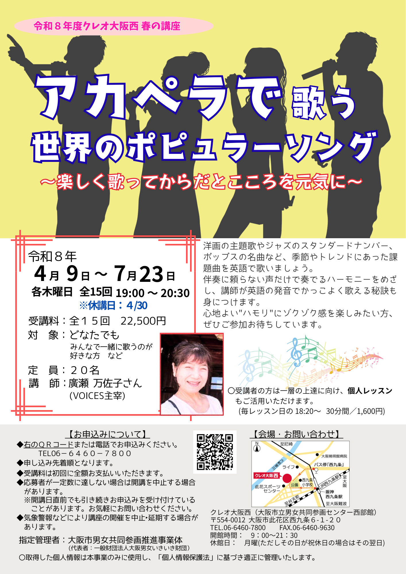 アカペラで歌う世界のポピュラーソング~楽しく歌ってからだとこころを元気に~(体験受講できます!)