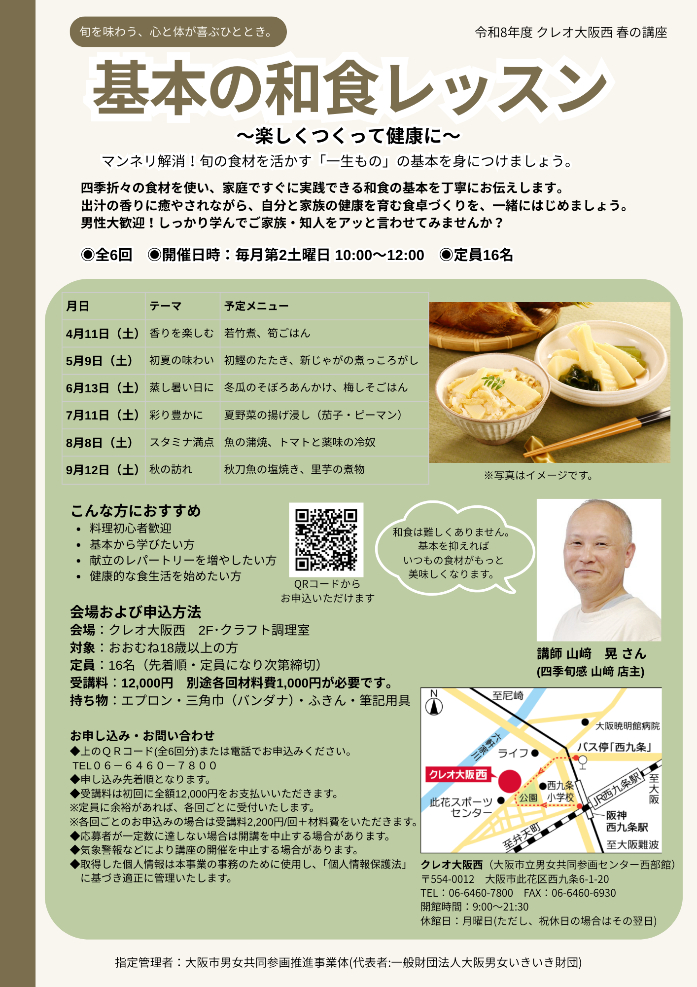 四季折々の食材を使い、家庭ですぐに実践できる和食の基本を丁寧にお伝えします。