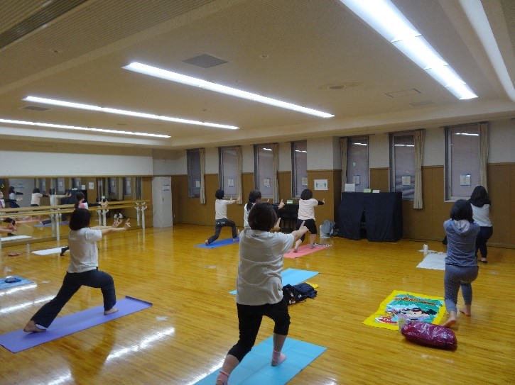 持ち物:ヨガマットまたはバスタオル、飲みもの、タオル