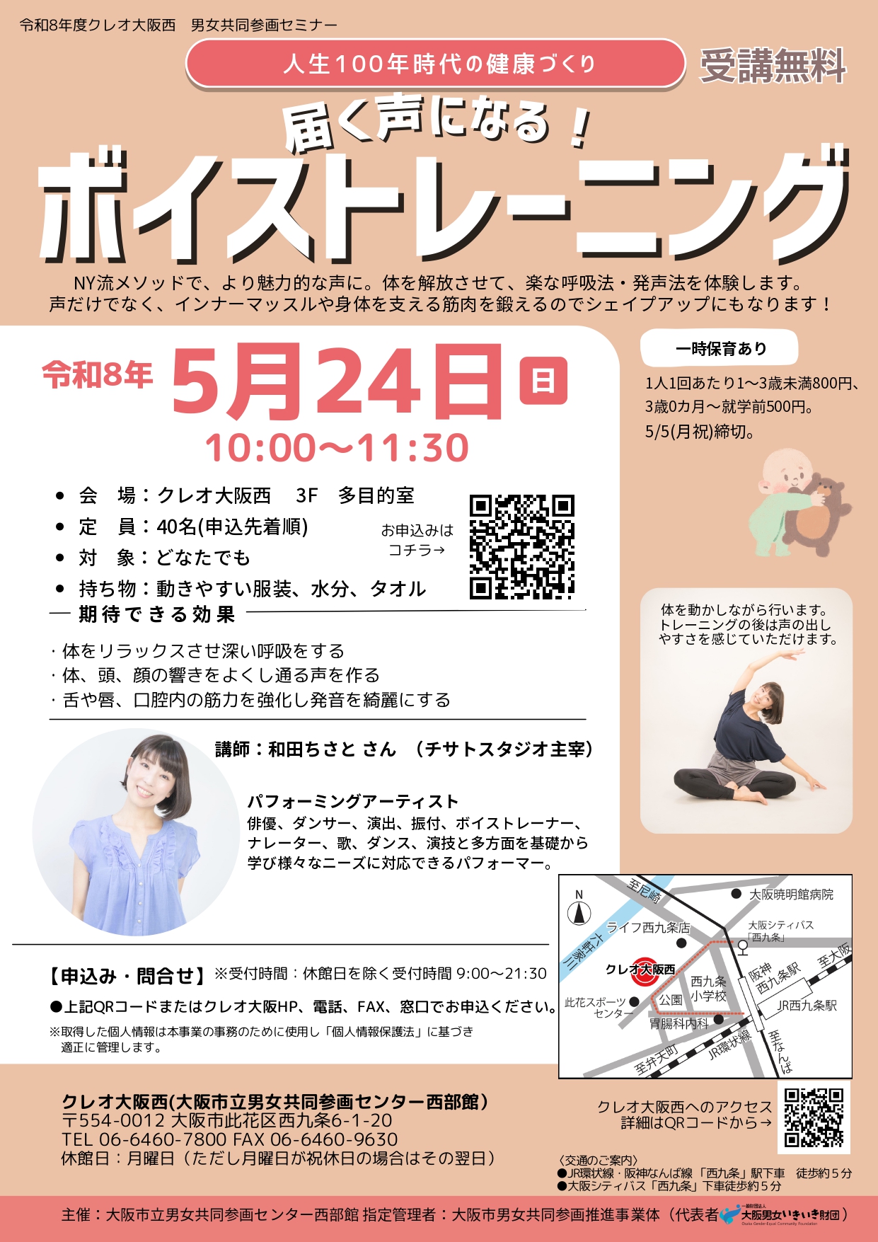 主催:大阪市立男女共同参画センター西部館 指定管理者:大阪市男女共同参画推進事業体 (代表者:大阪男女いきいき財団)