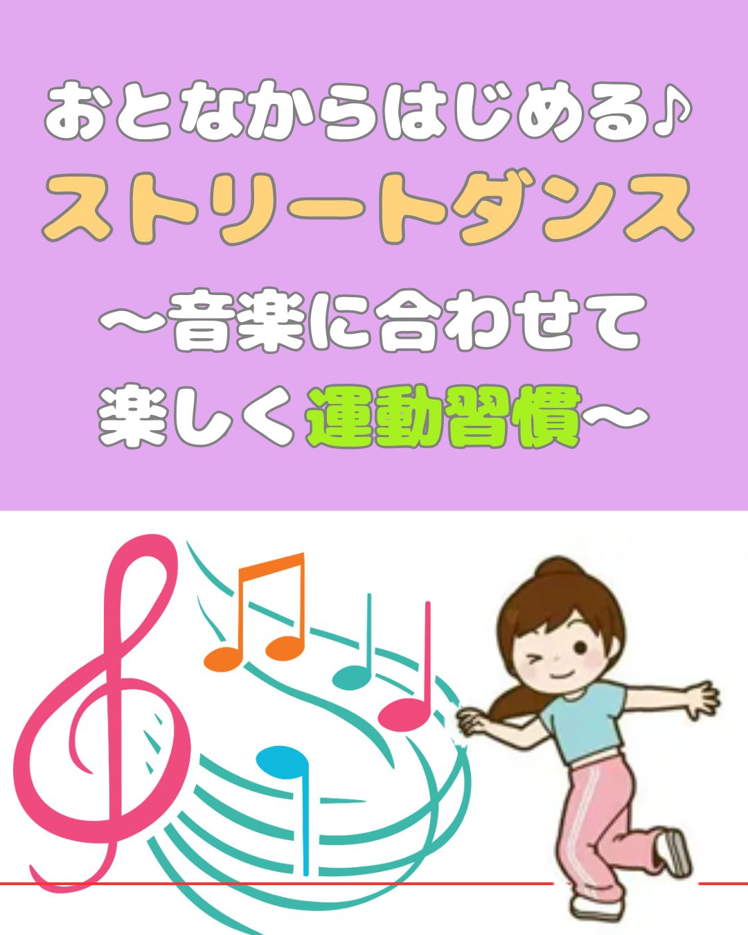 「ダンスができた!」「ダンスって楽しい!」を感じてみませんか。 ダンスの基礎を簡単なステップやリズムの取り方から学びます。 ダンス未経験者も初心者も、気軽に楽しみながら、運動習慣として取り入れましょう。